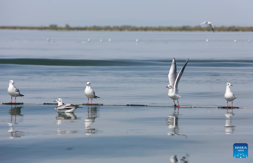 Birds are seen at a scenic spot of Ulunggur Lake in Fuhai County of Altay, northwest China's Xinjiang Uygur Autonomous Region, Sept. 8, 2025.