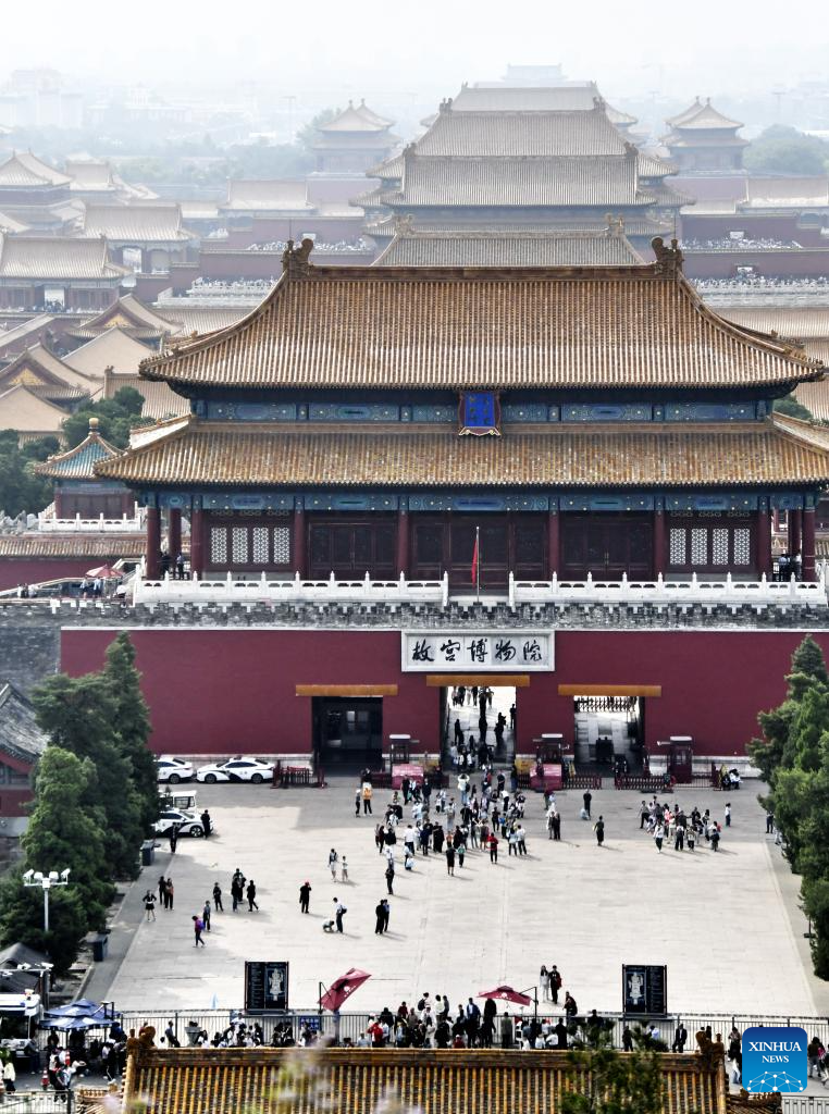 People visit the Palace Museum in Beijing, capital of China, Oct. 4, 2025. Tourist destinations across China are witnessing a surge in visitors as the country's eight-day National Day and Mid-Autumn Festival holiday began on Wednesday. (Xinhua/Li Xin)